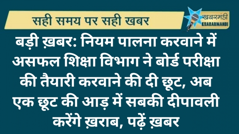 ख़बरमंडी न्यूज़, बीकानेर। दीपावली की छुट्टियों पर फिर से संकट आ गया है। अब परीक्षा की तैयारी व दोहरान कार्य के लिए स्कूल संचालित की जा सकेगी। लेकिन यह छूट केवल बोर्ड परीक्षाओं की तैयारी हेतु दी गई है। उस पर भी शर्त यह है कि अभिभावकों की सहमति होनी चाहिए। वहीं पांच दिवसीय प्रकाश पर्व की छुट्टी तो देनी ही पड़ेगी।