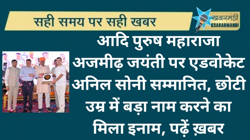 ख़बरमंडी न्यूज़, बीकानेर। श्री मेढ़ क्षत्रिय स्वर्णकार समाज के आदि पुरुष महाराजा अजमीढ़ की जयंती पर बीकानेर में सम्मान समारोह आयोजित हुआ। इस कार्यक्रम में समाज के विभिन्न विशिष्ट युवाओं को सम्मानित किया गया। इसी कड़ी में उभरते युवा अधिवक्ता अनिल सोनी को भी सम्मानित किया गया। सोनी को यह सम्मान सामाजिक क्रियाकलापों में विशेष भूमिका निभाने सहित समाज के संगठनों के विधि सलाहकार के रूप में कार्य करने हेतु दिया गया। अनिल को यह सम्मान विधायक जेठानंद व्यास, नोखा के पूर्व विधायक बिहारीलाल विश्नोई, आईआरएस घनश्याम सोनी, श्री मैढ़ क्षत्रिय स्वर्णकार समाज बीकानेर के अध्यक्ष मनीष कुमार लांबा, उपायुक्त देव स्थान विभाग गौरव सोनी, तहसीलदार प्रतिज्ञा सोनी, पुलिस निरीक्षक जयकिशन सोनी व कोटड़ी धाम अध्यक्ष रामकुमार सोनी ने प्रदान किया।