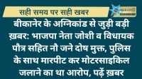 ख़बरमंडी न्यूज़, बीकानेर। गंगाशहर थाना क्षेत्र के एक स्वर्णकार के घर आए दूसरे स्वर्णकार से झगड़े का मामला सामने आया है। झगड़े में घायल हुए राजकुमार सोनी को ट्रोमा ले जाया गया है। थानाधिकारी अरविंद भारद्वाज ने बताया कि कानासर निवासी भवानी शंकर सोनी अपने चचेरे भाई के साथ राजकुमार के घर बालियां बेचने आया था। दोनों में पहले से व्यापार चला आ रहा है। बताया जा रहा है कि आरोपी भवानी व उसका भाई बिना पूछे उसके दरवाजे के अंदर घुसते हुए आंगन तक आ गये। राजकुमार बाहर आया तो उसने कहा बिना पूछे घर में कैसे घुसे। यह सारी घटना सीसीटीवी कैमरे में कैद हुई। जिसके बाद दोनों में बोलचाल बढ़ी और आरोपी भवानी ने फ्रिज पर पड़ा सब्जी काटने वाला चाकू उठाकर हमला बोल दिया। राजकुमार व उसके घर का एक अन्य युवक और भवानी व उसका भाई आमने सामने हो गये। वहीं वीडियो में राजकुमार द्वारा उंगली दिखाते हुए कुछ कहा जा रहा है इसके बाद मामला बिगड़ गया। पुलिस फिलहाल दोनों पक्षों के बयान लिख रही है। ख़बर लिखने तक मामला दर्ज नहीं हुआ था। वहीं भवानी को कस्टडी में ले लिया गया है। दूसरा आरोपी नाबालिग है, जिसे दस्तयाब किया जाएगा। उल्लेखनीय है कि भवानी ने मुंह पर नकाब बांध रखा था।