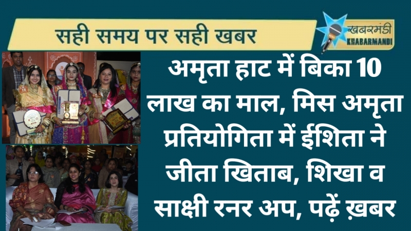 विभाग की उपनिदेशक डॉ अनुराधा सक्सेना ने बताया कि इस दिन मिस अमृता फैशन शो हुआ। इसमें ज्यूरी मेंबर के तौर पर महिला पॉलीटेक्निक कॉलेज की प्राचार्या डॉ संगीता सक्सेना, मिस मूमल 2023 गरिमा विजय व एंटरप्रेन्योर राधिका मौजूद रहीं। संगीता, गरिमा व राधिका ने रैंप वॉक करने वाली युवतियों से सवाल भी पूछे। मिस अमृता हाट फैशन प्रतियोगिता में इशिता कंवर ने प्रथम स्थान प्राप्त कर मिस अमृता का खिताब जीता। वहीं शिखा गुप्ता प्रथम रनर-अप व साक्षी रामावत द्वितीय रनर-अप रहीं।