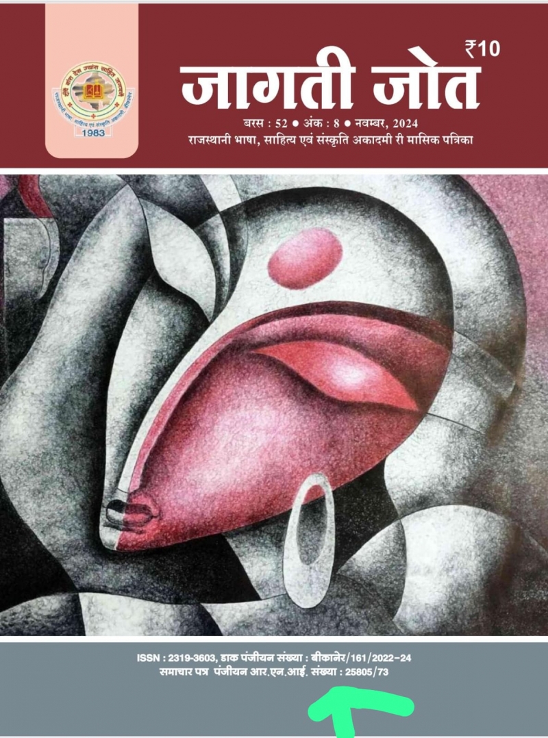 -उल्लेखनीय है कि जागती जोत का शुरुआती रजिस्ट्रेशन 1973 में राजस्थानी भाषा साहित्य संगम के नाम से हुआ, जिसके प्रधान संपादक मनोहर शर्मा थे। बाद में यह किताब अकादमी के अंतर्गत आ गई। जागती जोत के टाइटल रद्द होने की पुष्टि के लिए आप दिए गए लिंक https://prgi.gov.in/our-services/cancelled-data-for-website पर जाकर जागती जोत के कवर पेज़ पर दिए गए आरएनआई रजिस्ट्रेशन नंबर 25805 से सर्च कर सकते हैं। यही नंबर जागती जोत पर अंकित है। लिंक सीधे ना खुलने पर लिंक कॉपी करके गूगल पर सर्च करें।